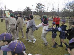 内容:午前は吹田地区が主催のセレモニーとゲーム、午後は団行事、となにかと慌しい1日でしたが、思ったよりボーイ隊のスカウトも真剣になってゲームに参加していたのではないかと感じました。ガールスカウトでもThinkingDayというように、1年に1回ボーイスカウトの創始者のBP卿の誕生日に併せてスカウト運動というものについて考える事が出来たでしょうか?今は「ちかい」と「おきて」というものの意味が解らないかも知れないけれど、きっといつかその素晴らしさに気付く日が来ると思います。スカウトの諸君にそういった日がくる事を信じています。